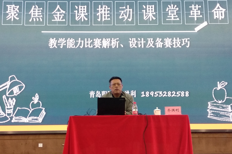 齐洪利首先为我校第十届教师教学技能大赛获得者和拟参加第十一届校赛的老师们做了专题培训,通过点对点、面对面的交流,针对我校教师在参赛中遇到的各种问题进行了答疑解惑。而后围绕教学能力比赛解析、设计和备赛技巧,为我校250多位老师作了题为“聚焦金课 推动课堂革命”的主题讲座。齐洪利于2018年带队参加了国家教师教学能力大赛并获得一等奖,具有丰富的实战经验。他不仅从评委专家的角度,对国家教学能力大赛的赛事背景、政策制度进行了深刻解读,还从参赛者的角度,和老师们分享教学设计、课堂展示、作品制作等方面的经验,为全场教师上了生动的一课。