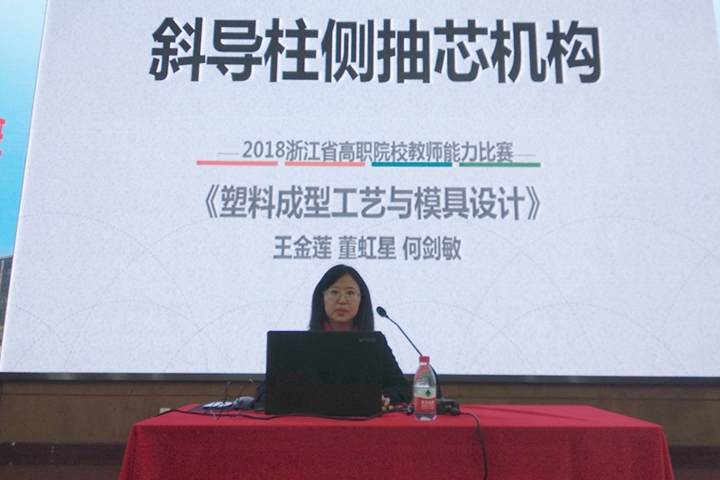 我校2018年浙江省教师教学能力比赛一等奖获得者,机电工程学院王金莲老师作为特邀讲师,在培训会上展示了团队参赛作品,受到齐洪利和广大教师的一致好评。