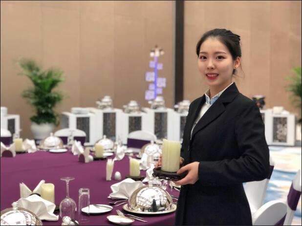 何羽婷是这个高级礼仪接待组出色的一员,她勤奋学习,苦练专业技能。2017年在杭州国际博览中心实习期间,就被评为优秀实习生,毕业后留在杭州国博中心工作。2018年,她又被杭州国博中心评为工会积极分子。 何羽婷在校学习期间,品学兼优,曾获校优秀团员、浙江省高职高专院校导游服务大赛二等奖等荣誉。