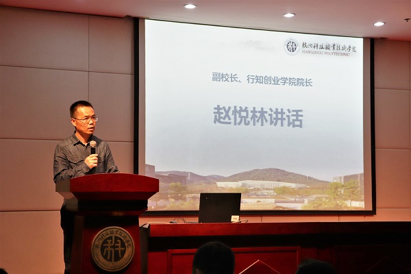 赵悦林为开班仪式致辞,他向大家介绍了行知创业学院雏鹰班、飞鹰班、雄鹰班分层培养的具体情况,并勉励第五期雏鹰班的430名新学员要“静下心来学”、“带着问题学”,“高效率地学”。