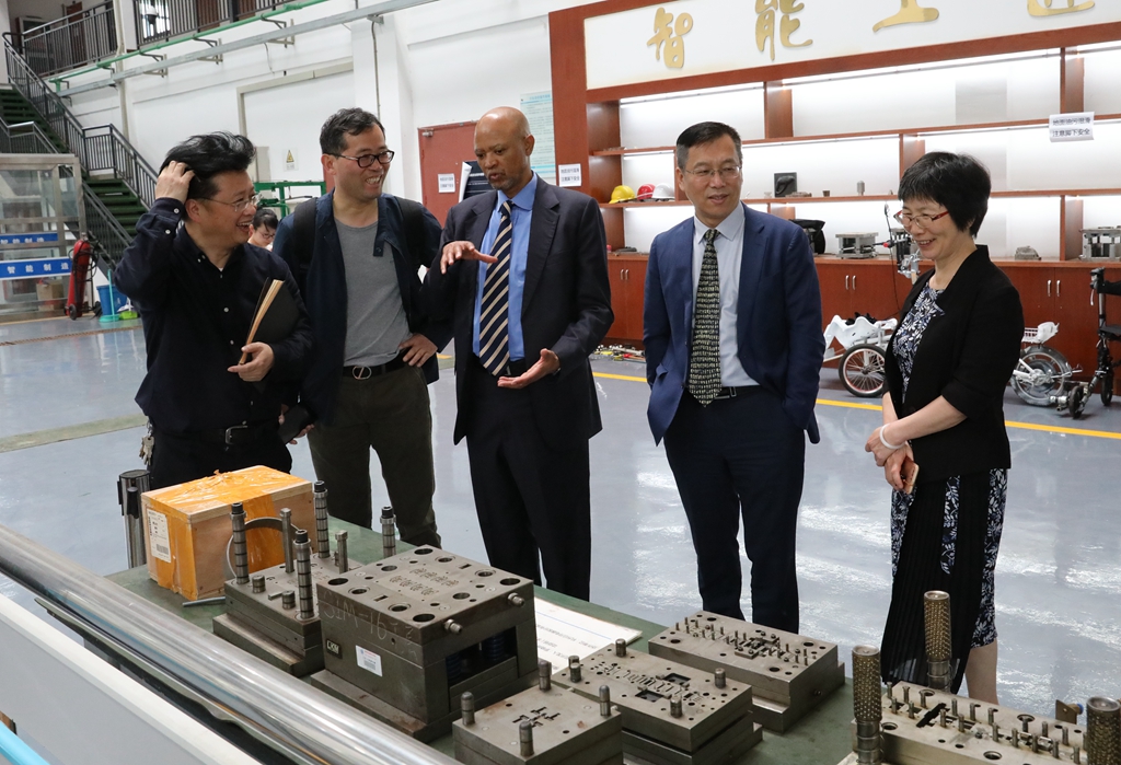 在交流访问期间,韦恩一行还参加了与南非留学生的见面会, 参观了机电学院的智能制造应用技术中心。