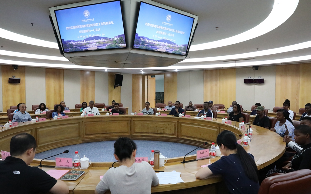 5月20日,南非工业和制造业培训署署长亚丹斯•格列高利•韦恩(Adams Gregory Wyne)在南非中国文化与教育交流中心主任陆志雷博士、主任陈松涛等领导的陪同下来我校访问交流。校长许淑燕、副校长赵悦林热情接待了韦恩一行。