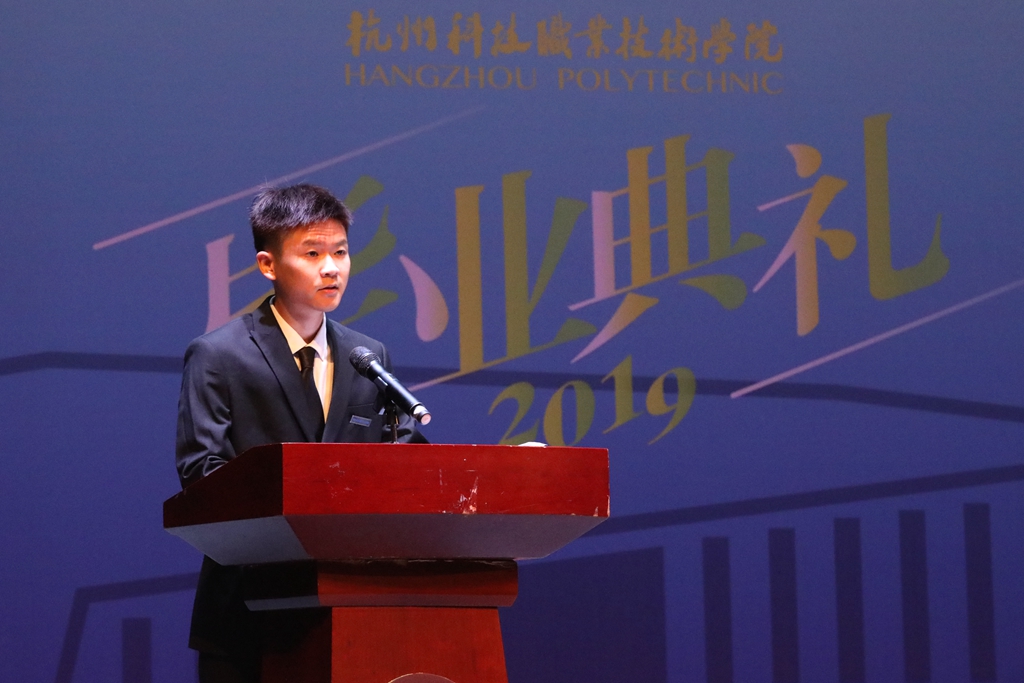 旅游学院李思远代表全体毕业生对母校的栽培表示由衷的感谢,并号召全体毕业生时刻谨记“德业兼修、知行合一”的校训,在工作中继续发扬“手脑双挥、匠心致远”的学风精神,在工作中努力扛起新的使命和担当。