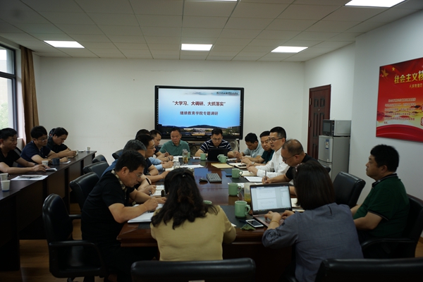 6月18日,校党委在继续教育学院开展“大学习、大调研、大抓落实”专题调研活动。校党委书记谢列卫,副校长袁俊出席会议,党办、党委组织部、发展规划处、产学合作处、计财处、公管处、保卫处、科新公司负责人,继续教育学院班子成员及各内设机构负责人参加了会议。