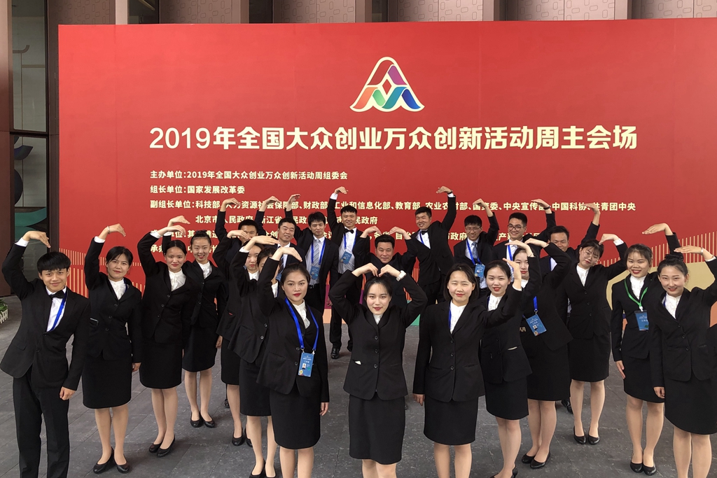 6月13日,2019年全国大众创业万众创新活动周在杭州梦想小镇主会场开幕。我校旅游学院选派25名学生志愿者参与杭州国际博览中心服务团队,进行了为期一周的“双创周”服务活动,为大会提供现场布置、现场引导、会议咨询等服务。