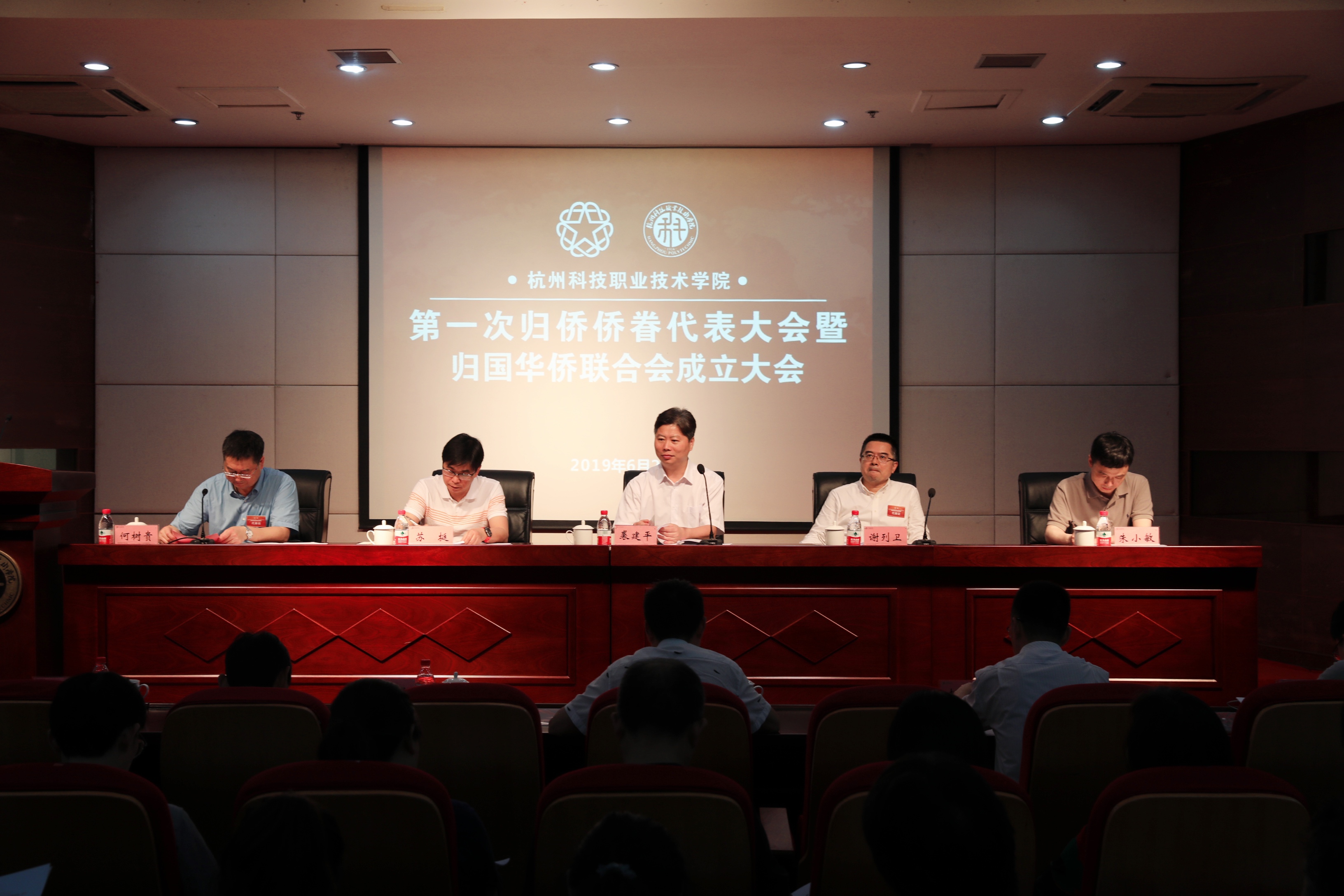 6月21日下午,杭州科技职业技术学院第一次归侨侨眷代表大会暨归国华侨联合会成立大会顺利召开。杭州市侨联党组书记、副主席裘建平,杭州市侨联副主席苏挺,浙江省侨联办公室(组织人事部)主任(部长)朱小敏,杭州市侨联秘书长李孟波,富阳区侨联副主席张卫华,校领导谢列卫、何树贵、寿伟义、高云飞、赵悦林等出席会议,各党总支部书记、统战委员以及学校归侨、侨眷、归国留学人员代表等90余人参加会议。校党委副书记何树贵主持会议。