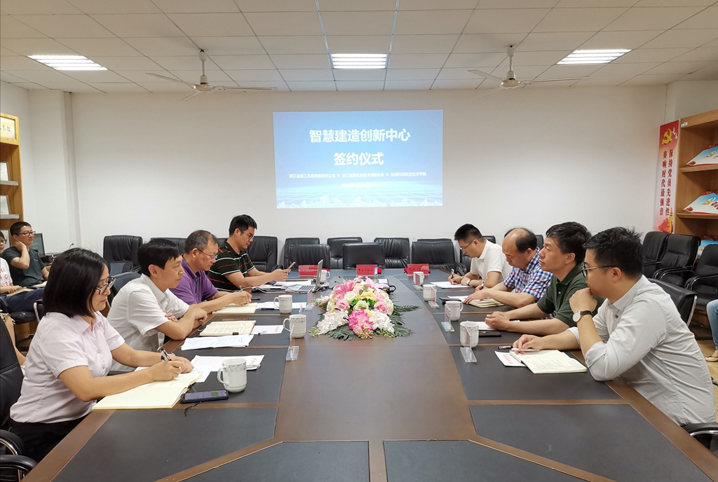 6月20日,我校与浙江省建筑业技术创新协会、浙江省建工集团有限责任公司三方举行“智慧建造创新中心”共建签约仪式,合作打造“行-校-企”联合育人平台。我校副校长寿伟义,浙江省建筑业技术创新协会副会长兼秘书长朱国锋出席签约仪式。浙江省建筑业技术创新协会培训中心主任郑立,浙江省建工集团有限责任公司总工程师金睿,浙江省建工工程研究院业务总监褚鑫良,产学合作处、城市建设学院等部门负责人出席签约仪式。
