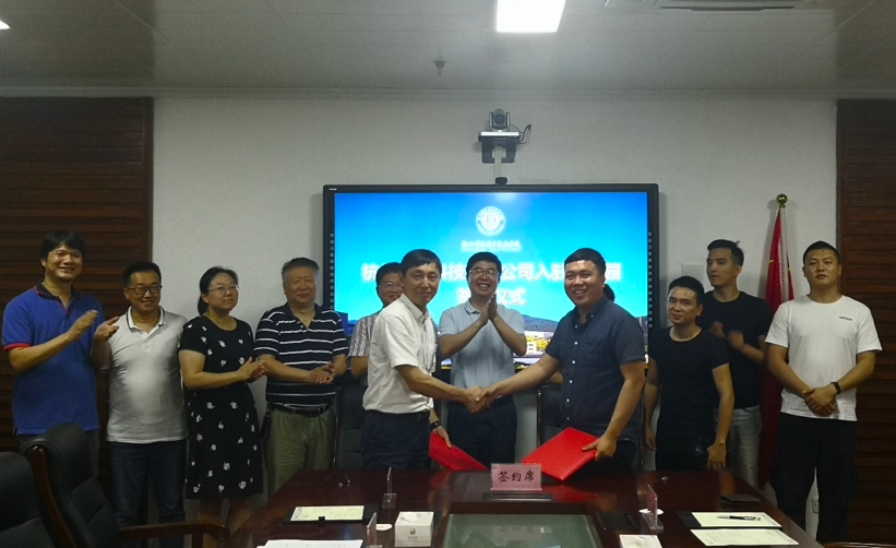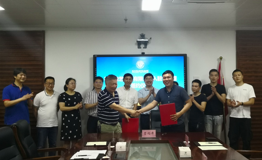 签约仪式现场,寿伟义和黄潇签署了校企合作协议;校资产经营公司贾利国和黄潇签署了入驻创业园的合作协议。