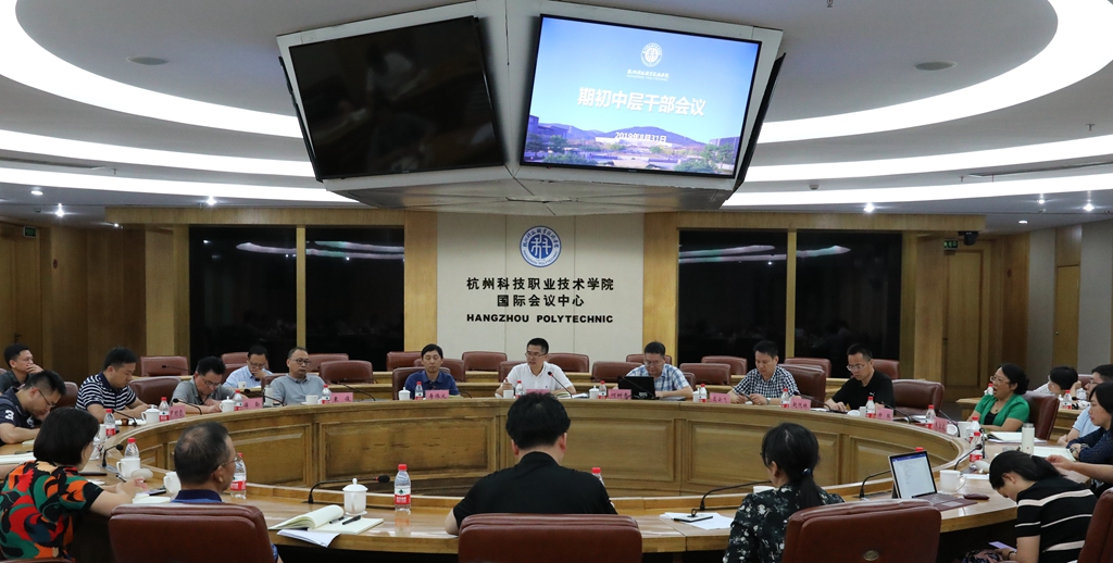 校党委书记谢列卫全面总结了学校暑期工作,充分肯定了学校中层干部、教职员工担当有为、连续作战的精神。会上,谢列卫传达了上级相关会议精神和对“职教二十条”的专家解读,号召全校对标一流高职院校,明差距、找问题、出对策,结合年初党政工作要点和学校工作实际,以争创一流的高昂斗志抓实日常工作。谢列卫着重对学校下半年五项重点工作做了部署:一是深入开展好“不忘初心、牢记使命”主题教育,以“三学三促”推动学校事业发展;二是全力推进我校“创一流”内涵建设三年行动计划,以“体现影响力、体现辐射力、体现基础力”为衡量标尺,开展八大工程建设,“争上游,创水平”;三是启动实施人才强校战略,做好顶层设计、制定三年规划、完善配套制度与管理办法,在全校营造“人才是第一资源”的共识氛围;四是推进基础建设与重大项目建设,抓好餐饮实训楼、钱塘新区“智能制造”实训地基项目与75亩新征用地等重点项目建设工作;五是举办高职办校十周年纪念暨“创一流”发展高职论坛,完成校史馆建设,推进校友校史工作。会上,谢列卫还强调了校园安全稳定工作与学习强国平台应用推广工作。