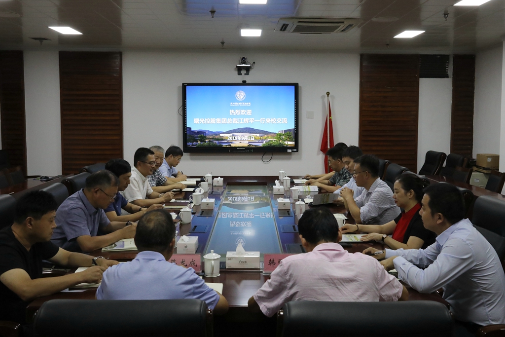 9月1日,曙光控股集团总裁兼曙光酒店集团董事长江辉平等一行六人来我校访问交流。校党委书记谢列卫 、副校长寿伟义热情接待了江辉平一行。实训与设备管理处、产学合作处、公共事务管理处、旅游学院、资产经营有限责任公司和科新后勤管理公司等部门、学院的相关负责人参加座谈会。