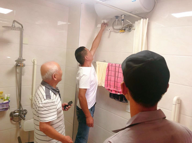 韩国埏夫妇均为我校原机械教研室退休教师,老两口都已八十多岁,相依为伴居住在富春江曜阳国际老年公寓。前几日,直属党总支部委员陈仑得知,老人家中电路不畅,热水器不能正常运行,多次找专业人士维修未果,无法洗澡很不方便。跟十二支部的党员们一说,俞凯、陈伟苗等人当即行动起来,赶往老人家中。他们仔细检查了电路,找到了故障原因,不但修好了热水器,还对老人家中存在的其他电路安全隐患做了排查。两位老人很高兴,称赞党员们都是“乐于助人的热心人”。