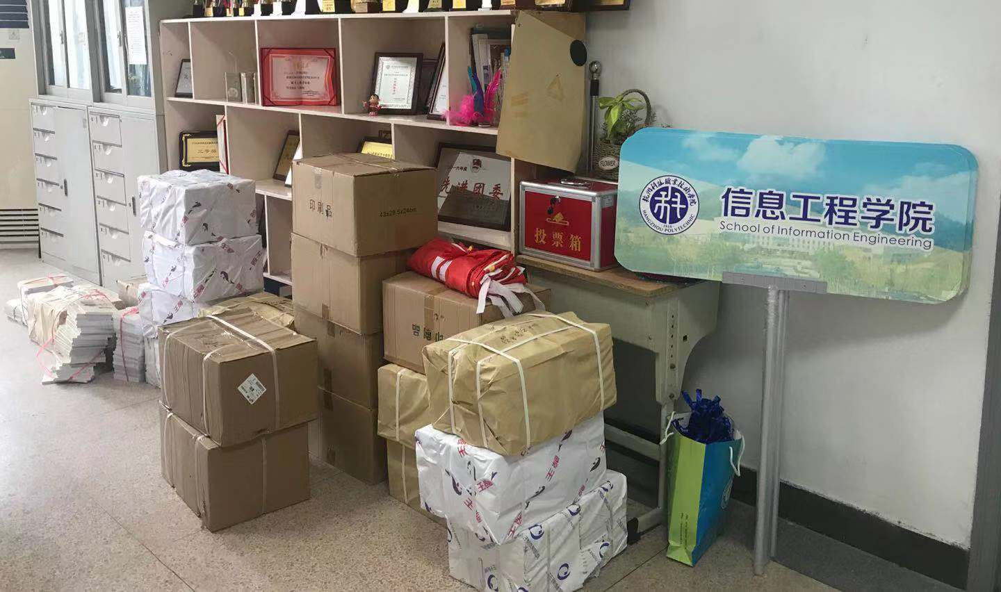 迎新是学校每年9月的重头戏,对于学工线来说,特别繁忙。为了减轻各个二级学院的工作压力,今年第四党支部的7名党员组成服务小分队,将新生手册、学生安全手册、《陶行知读本》、新生宝典、班主任和辅导员工作记录本、军训用旗、值班记录本、大学生医保证历本等材料分门别类地送达各二级学院,并与相关负责老师现场确认,答疑解惑。