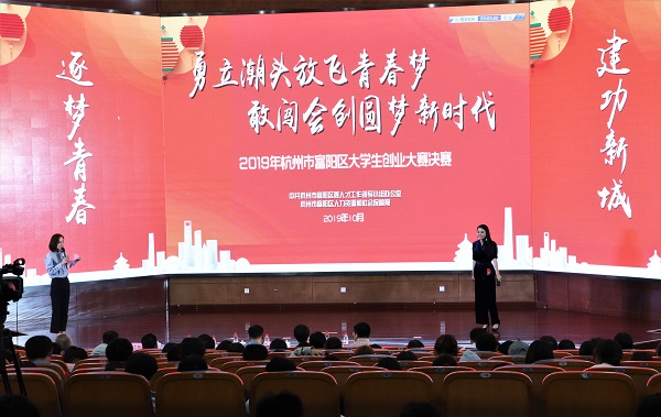 近日,2019年杭州市富阳区大学生创业大赛决赛暨颁奖典礼在我校举行。杭州市富阳区人力资源和社会保障局党委书记丁中苏,杭科院副校长、行知创业学院院长赵悦林出席活动,富阳区、我校相关各职能部门负责人,雏鹰班300余名学员参加了当天的活动。