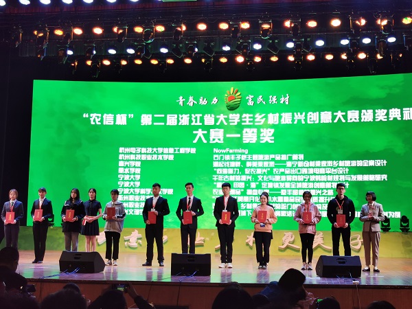 11月1日,“农信杯”第二届浙江省大学生乡村振兴创意大赛总决赛在浙江农林大学落下帷幕。我校艺术设计学院共获一等奖一项、二等奖三项。该赛事由浙江省教育厅、浙江省农业农村厅、浙江省农村信用社联合社共同举办,面向全省高校,全省乡村,采用“乡村出题+高校答题+成果落地”的模式,属于我省大学生科技类竞赛。竞赛内容包括乡村产业创意、乡村规划创意、乡村公益创意三大类,赛道分招标村和自选村。本届竞赛共有70所高校参加,共计1203个项目,其中200个项目进入省级决赛,本科和高职院校同台竞技,竞争异常激烈。
