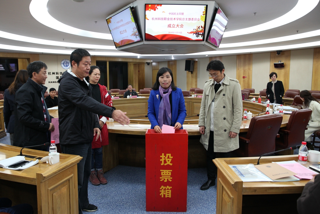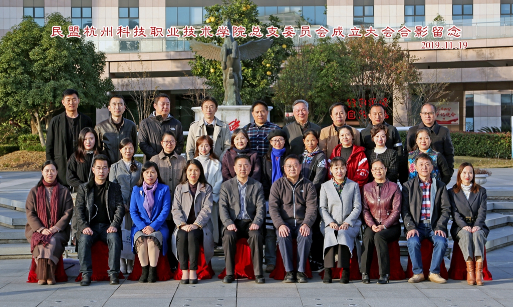 2019年11月19日下午,民盟杭州科技职业技术学院总支部委员会成立大会在图书馆国际会议厅隆重召开。大会选举产生了第一届总支部委员会委员。民盟市委会主委宦金元,民盟专职副主委申屠敏,杭州科技职业技术学院党委副书记何树贵等领导应邀出席会议。民盟富阳区基层委员会主委、富阳区政协副主席孙晓华,民革杭州科技职业技术学院支部负责人董建刚代表兄弟党派到会祝贺。民盟杭州科技职业技术学院总支部委员会的全部32名盟员参加会议。