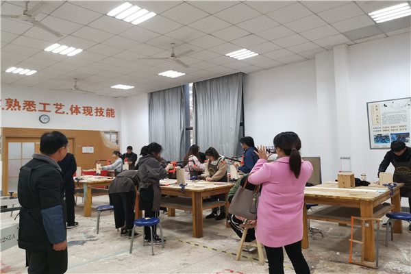 我校于2018年11月申报创建第三批富阳区非物质文化遗产传承教学基地,经过一年时间的努力,非遗传承教学基地建设取得明显成效。学校聘请多位非遗传承人担任艺术设计学院客座教授,成立了方建国、闻士善等三个名师工作室。遴选专职教师拜师学艺,组建起人员相对稳定、结构合理的非遗传承教学团队。成立剪纸、木工、纸伞非遗传承大学生社团,全面开展第二课堂、全校公选课等教学活动,持续提升了师生非遗传承与创新能力。