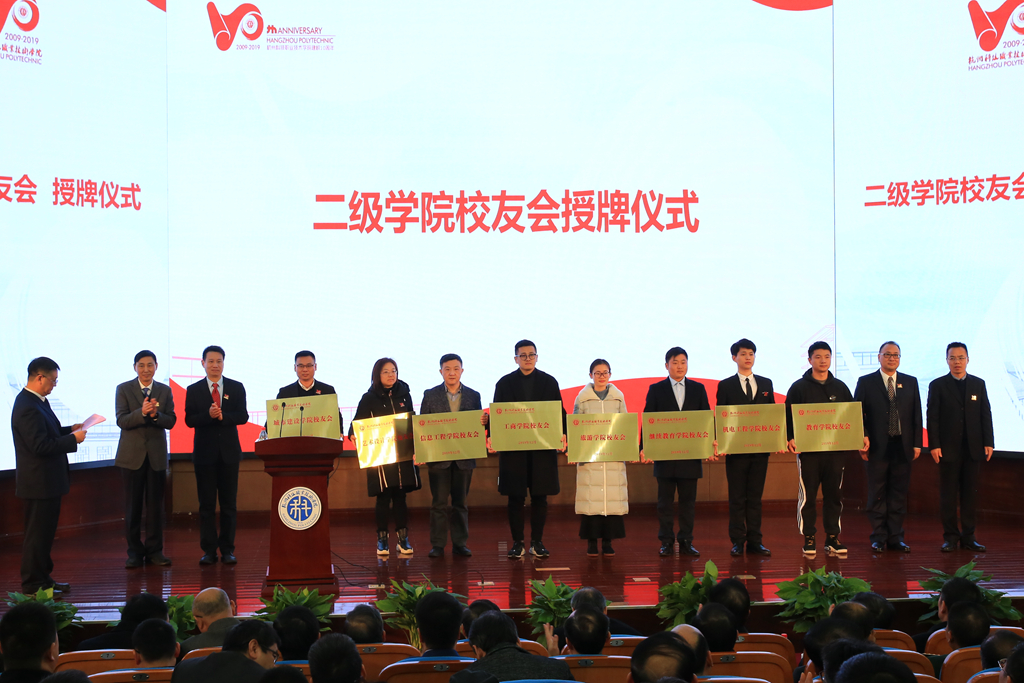 大会宣布成立杭科院校友总会,宣布副校长赵悦林为校友总会会长。全体校领导为杭州科技职业技术学院校友总会、各校友分会授牌。杭科院校友基金会也同日成立。