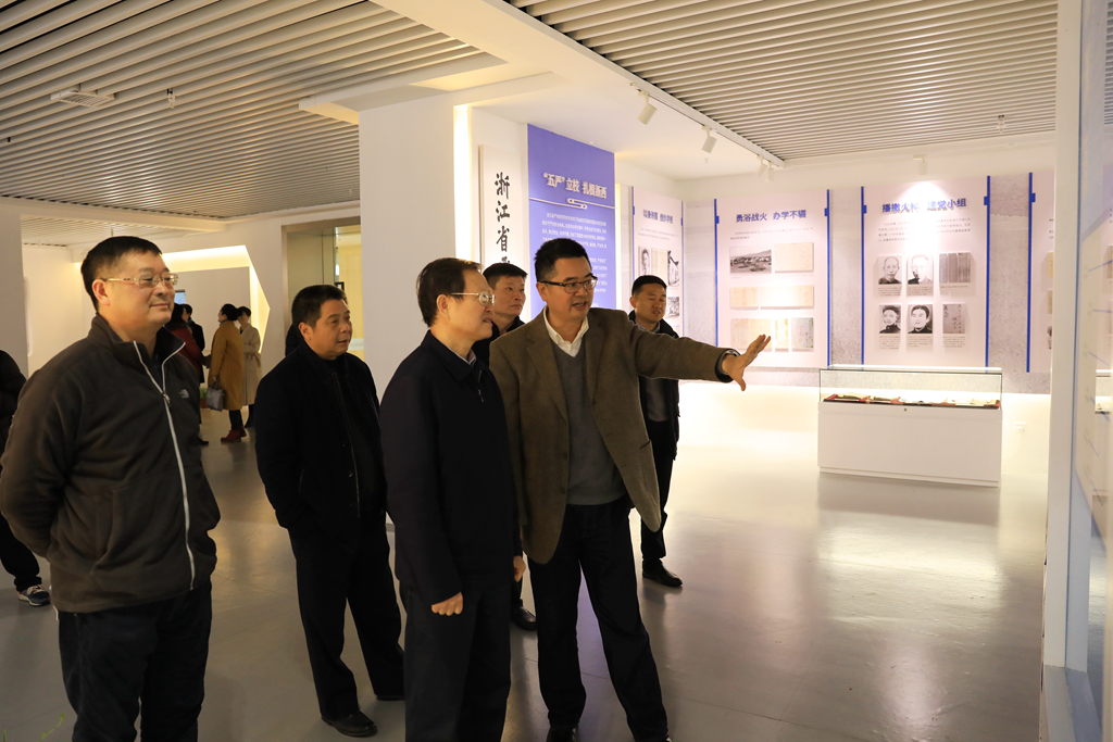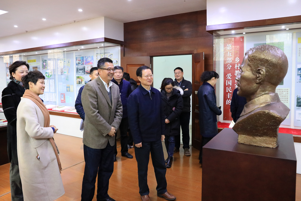 谢双成一行还参观了我校杭州陶行知研究馆(金海观纪念室),回顾了金海观先生对浙江教育事业及民主促进会创建所作的杰出贡献,对我校能够保存如此珍贵、丰富的史料表示肯定和赞赏。