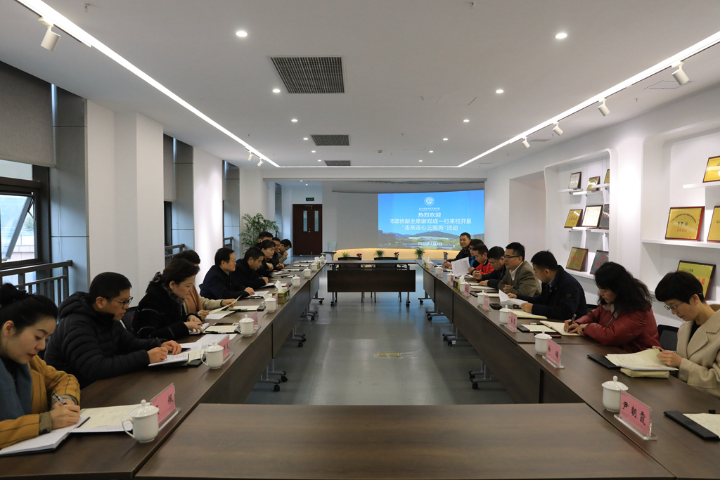 1月3日上午,市政协副主席、民进市委会主委谢双成等一行10人来我校开展“走亲连心三服务”活动,党委书记谢列卫,党委副书记何树贵,党委委员、统战部部长罗明誉及民进杭科院支部全体成员参加活动。