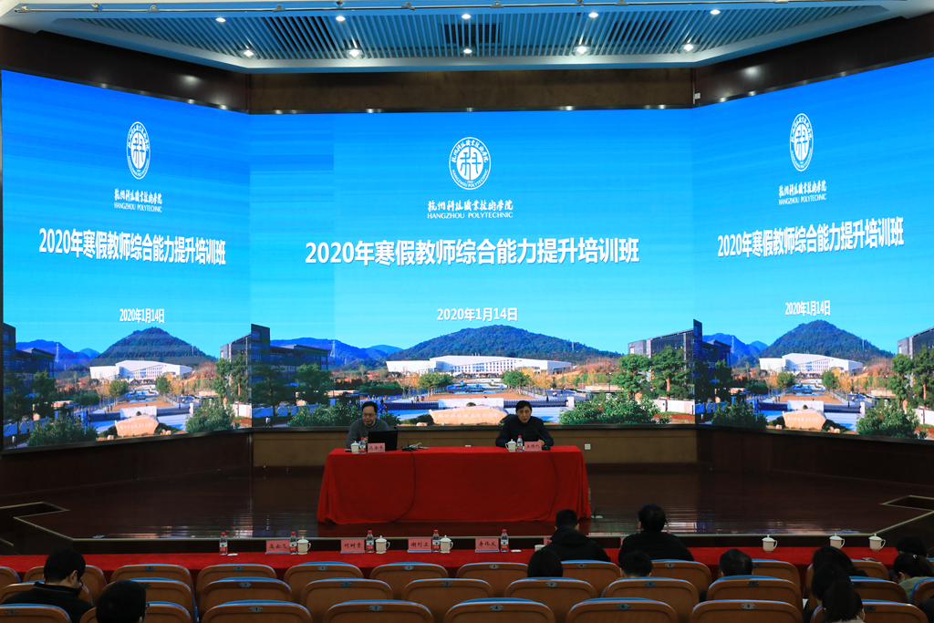 1月13日至14日,我校2020年寒假教师综合能力提升培训班在图书馆报告厅举行。校党委书记谢列卫、党委副书记何树贵、副校长寿伟义、纪委书记高云飞、副校长袁俊、副校长赵悦林、校党委委员朱宝宏出席了相关培训。全体中层干部,全体专任教师、实训教师、辅导员,各职能部门、二级学院(部)相关教师共计600余人次参加了本次培训。