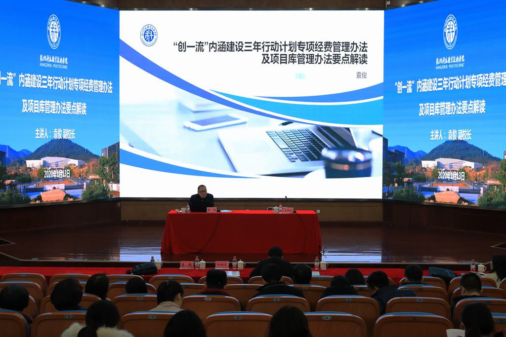 副校长袁俊作了题为《“创一流”内涵建设三年行动计划专项经费管理办法及项目库管理办法要点解读》的专题讲座,解读了项目库管理、专项资金使用及管理、市属高校国库集中支付等政策。他强调,各二级学院(部)、职能部门要早启动、早谋划、早实施、早验收,确保项目建设实施绩效。