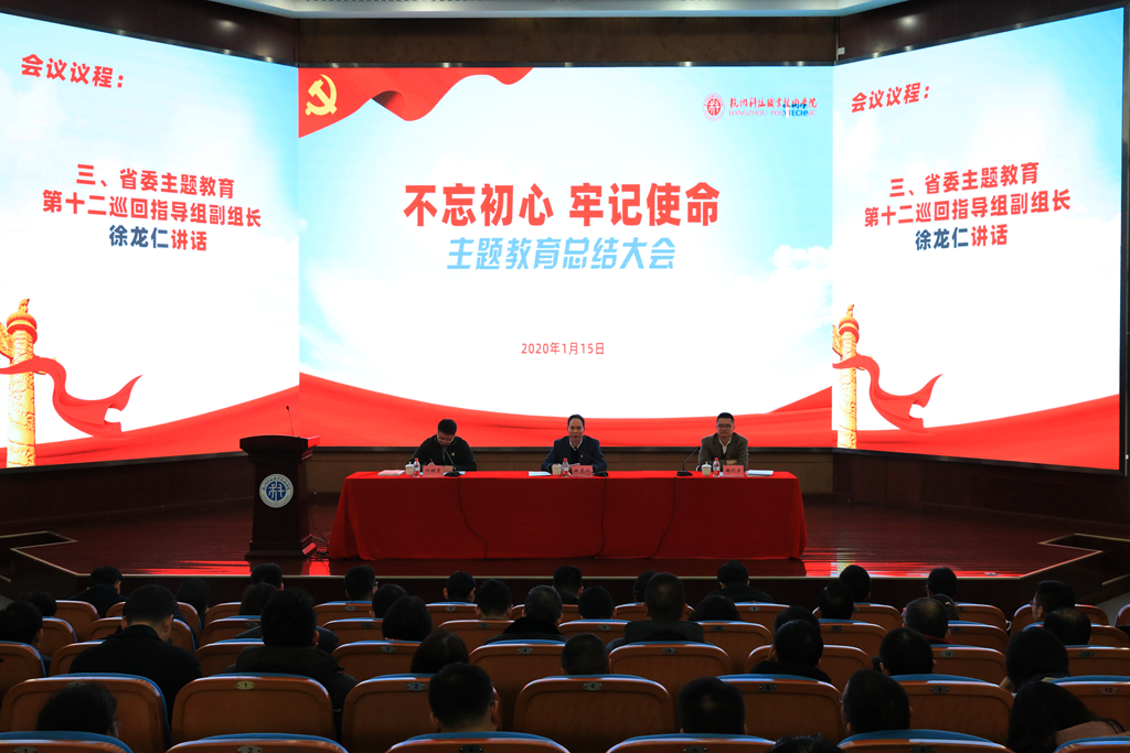 1月15日下午,我校召开“不忘初心、牢记使命”主题教育总结大会,深入学习贯彻习近平总书记重要讲话精神,学习贯彻中央、省市委主题教育总结大会精神,全面总结学校主题教育工作,为下一步巩固和深化主题教育成果作部署。省委主题教育第十二巡回指导组副组长徐龙仁到会指导,校党委书记谢列卫作主题教育总结报告。会议由党委副书记何树贵主持。