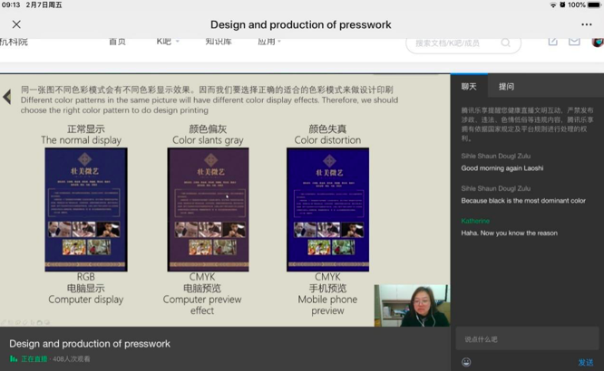 2月5日上午9点,艺术设计学院的20名南非留学生齐齐坐在各自寝室的电脑前,开始了印刷品设计与制作(Design and Production of Presswork)的线上课程学习,以特殊的方式开启了新学期的学习生活。虽受疫情影响,学校推迟开学,但南非留学生的开课时间只比原定的2月3日晚了两天。