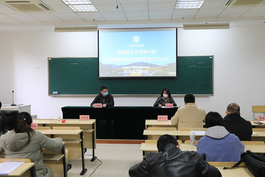 3月6日,学校召开校防疫工作领导小组在线教学及学生管理专题工作会议,就疫情期间如何全面推进在线教育和加强学生管理进行研讨和部署。校疫情防控工作领导小组组长、校党委书记谢列卫出席会议并讲话,校党委副书记何树贵主持会议,副校长寿伟义、校纪委书记高云飞、副校长袁俊、副校长赵悦林出席会议,相关职能部门负责人和各二级学院(部)全体中层干部在主会场与会,全体教学管理人员、任课教师、班主任、辅导员通过网络直播平台视频收看。