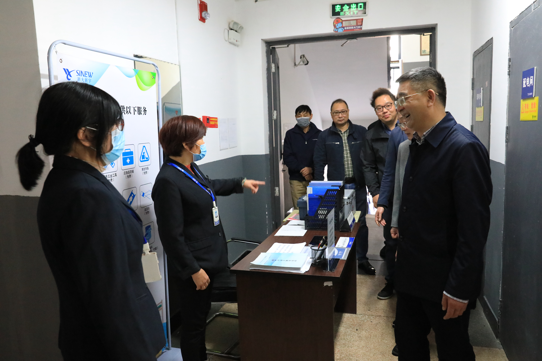检查组一行实地查看了学校大门检查点、卫生所、防疫物资储备仓库、隔离室、留学生宿舍、食堂等场所,重点了解了学校师生信息排查、教师返岗、防疫物资准备、校园消毒、校园管理、应急预案制订和演练以及返学复课安排等情况。