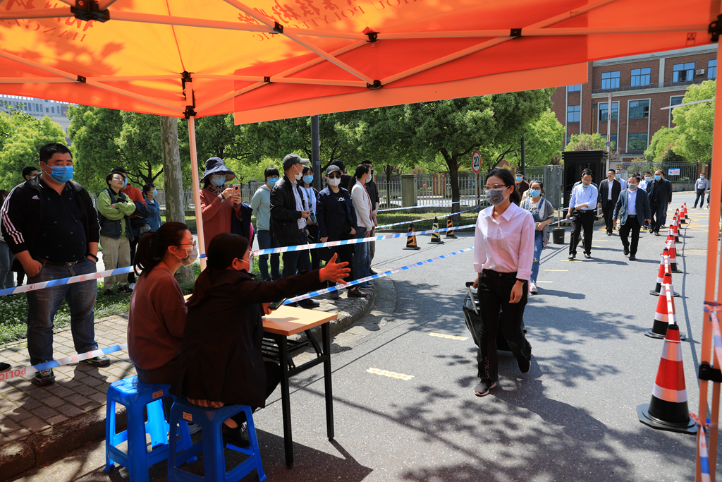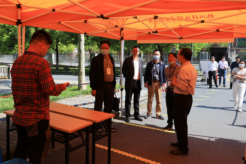 4月29日下午,富阳区人民政府副区长孙洁带领区教育局、卫健局、市场监管局、富春街道办事处组成的开学返校工作核验组,对我校高桥校区复学返校准备工作开展进行指导督查和验收。校疫情防控领导小组组长、校党委书记谢列卫陪同实地核验,校疫情防控领导小组常务副组长、副校长寿伟义,校疫情防控领导小组副组长、副校长赵悦林及校防疫工作领导小组“一办四组”主要部门负责人参加实地核验及工作汇报会。