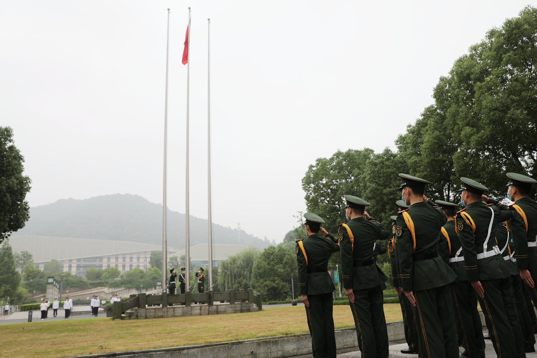 “在建党99周年的特殊时刻举行升旗仪式具有特殊的意义。”何树贵表示,中国共产党近百年的发展历程,也是中华民族艰苦卓绝伟大复兴的历程,我校师生应牢记使命、坚定信念,把“红船精神”发扬光大,“在杭州奋力建设‘重要窗口省会城市’展现‘头雁风采’的关键时期,团结一心、积极作为,贡献杭科院力量”。