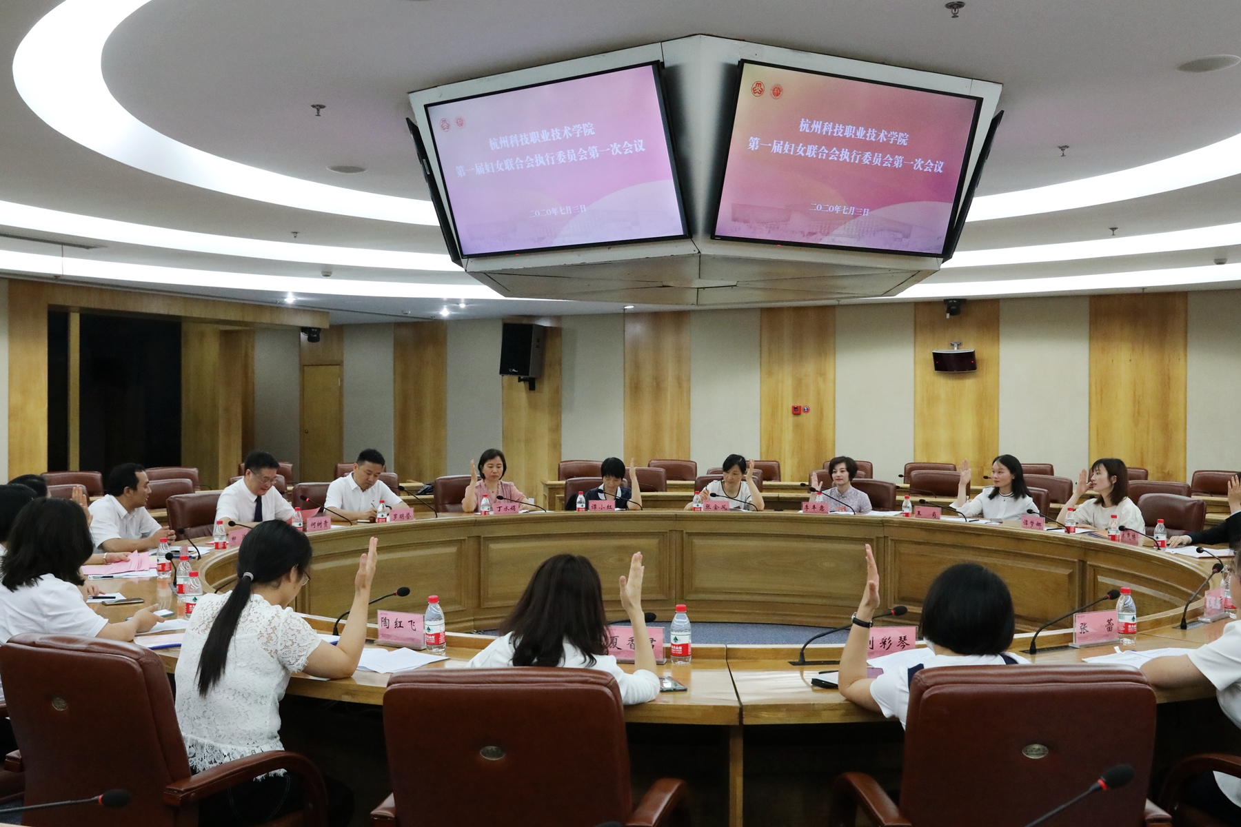 7月3日,杭州科技职业技术学院妇女联合会成立暨第一次妇女代表大会胜利召开。杭州市妇女联合会党组书记、主席阮英讲话,校党委书记谢列卫致闭幕辞,校党委副书记何树贵主持会议,校党委委员、副校长赵悦林,校党委委员、组织部部长罗明誉,杭州市妇女联合会基层工作部部长雍玥出席会议。129名正式代表参加会议。大会投票选举产生了我校妇联第一届执行委员会委员。
