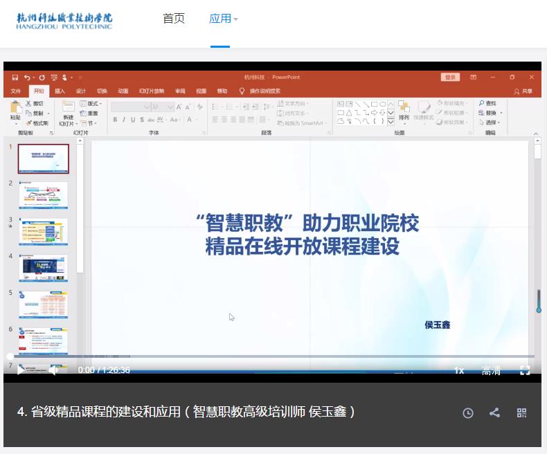 侯玉鑫作了题为《“智慧职教”助力职业院校精品在线开放课程建设》的专题讲座,结合智慧职教平台应用场景的各个方面,就如何在智慧职教上建设省级精品在线开放课程,并将课程应用于日常教学,以及如何在智慧职教上建设专业群资源库,实现教学资源在资源库,职教云,MOOC学院等多个平台共享作了详细的论述。