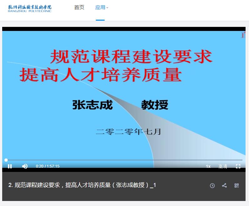 张志成教授以《规范课程建设要求 提高人才培养质量》为题,结合我校现有精品在线开放课程建设情况,从文件制度解析、规范课程体系、制定课程标准、明确建设目标等四个方面进行阐述,为我校构建科学的高职课程体系提出了宝贵意见。