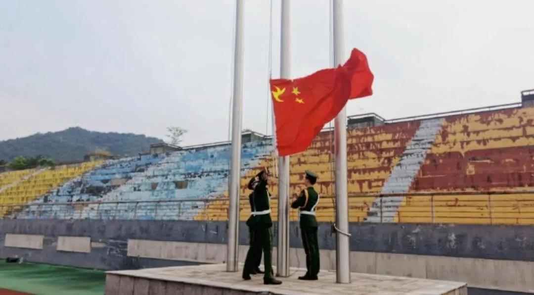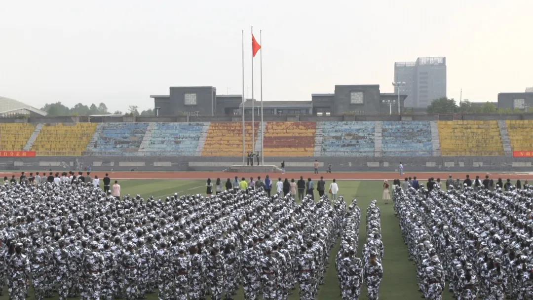 全体起立、奏唱国歌,国旗伴随着雄壮的国歌声冉冉升起,2020级新生开学典礼正式开始。