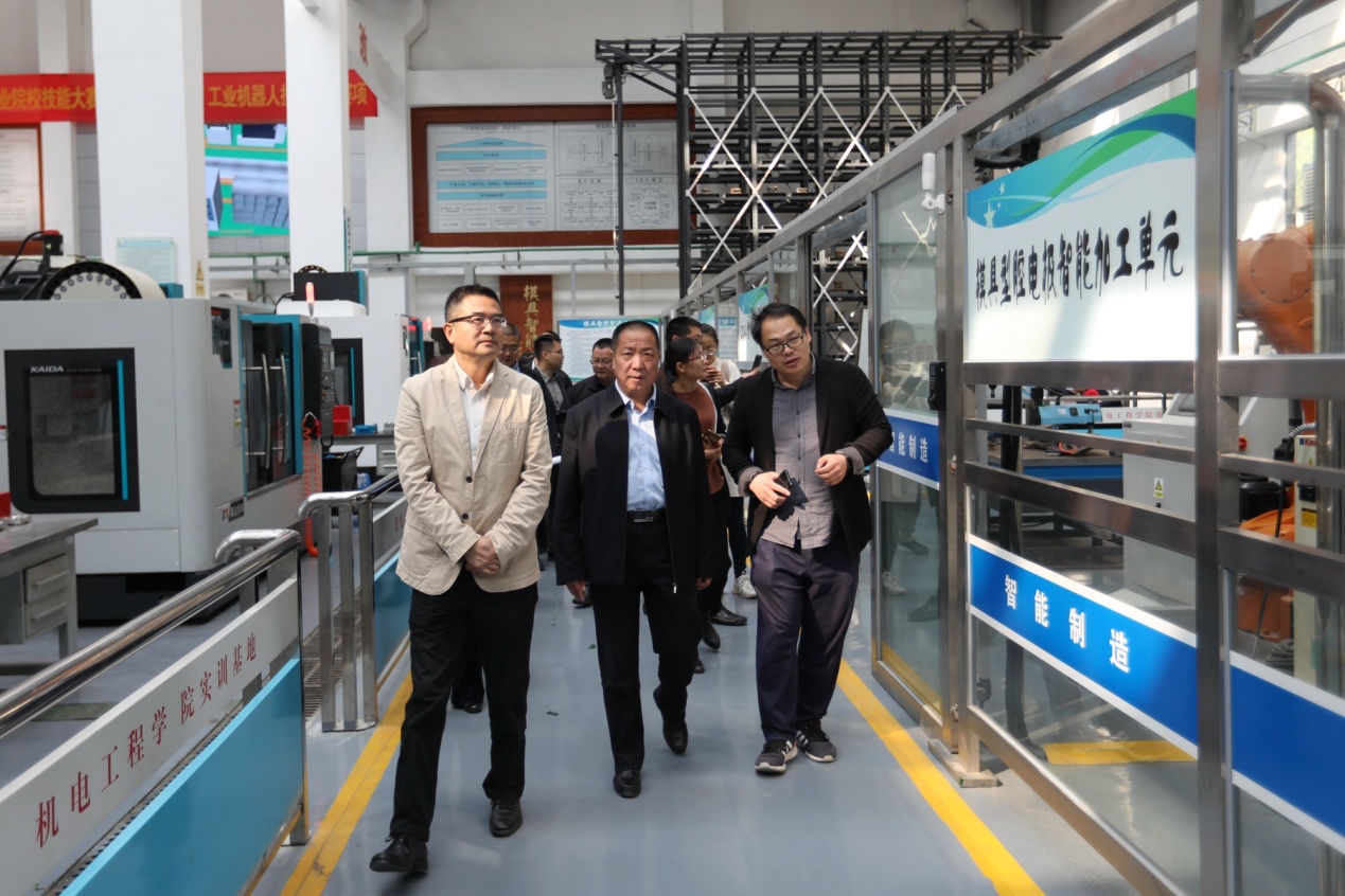 座谈会前,吴建军一行实地走访了旅游学院综合实训基地、艺术设计学院实训基地、机电工程学院“智能制造”应用中心、汽车工程技术应用中心,并参观了我校中轴线文化景观带和校史馆。