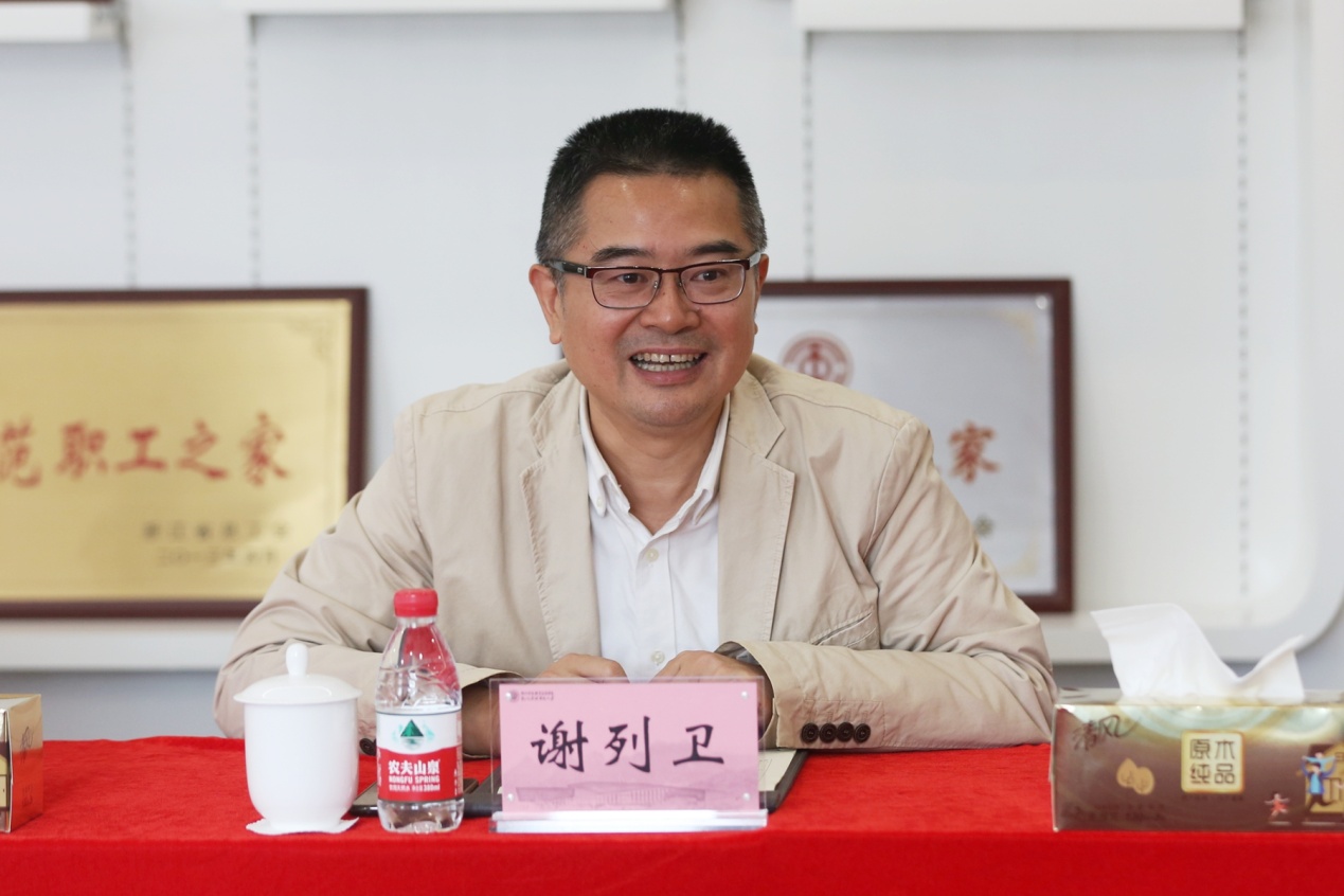 谢列卫对吴建军一行到来表示欢迎,并从办学历程、教学质量、师资力量、办学特色、发展目标等方面介绍了我校的基本情况。他表示,学校坚持服务杭州经济社会发展的办学定位,以行知文化为引领,以职业发展为导向,不断提升综合办学实力,积极开展社会服务。学校紧紧围绕市委市政府的中心工作,优化社区教育,打造数字经济专业群,推进政教产教融合发展,在服务“乡村振兴”战略等方面取得一定成绩。