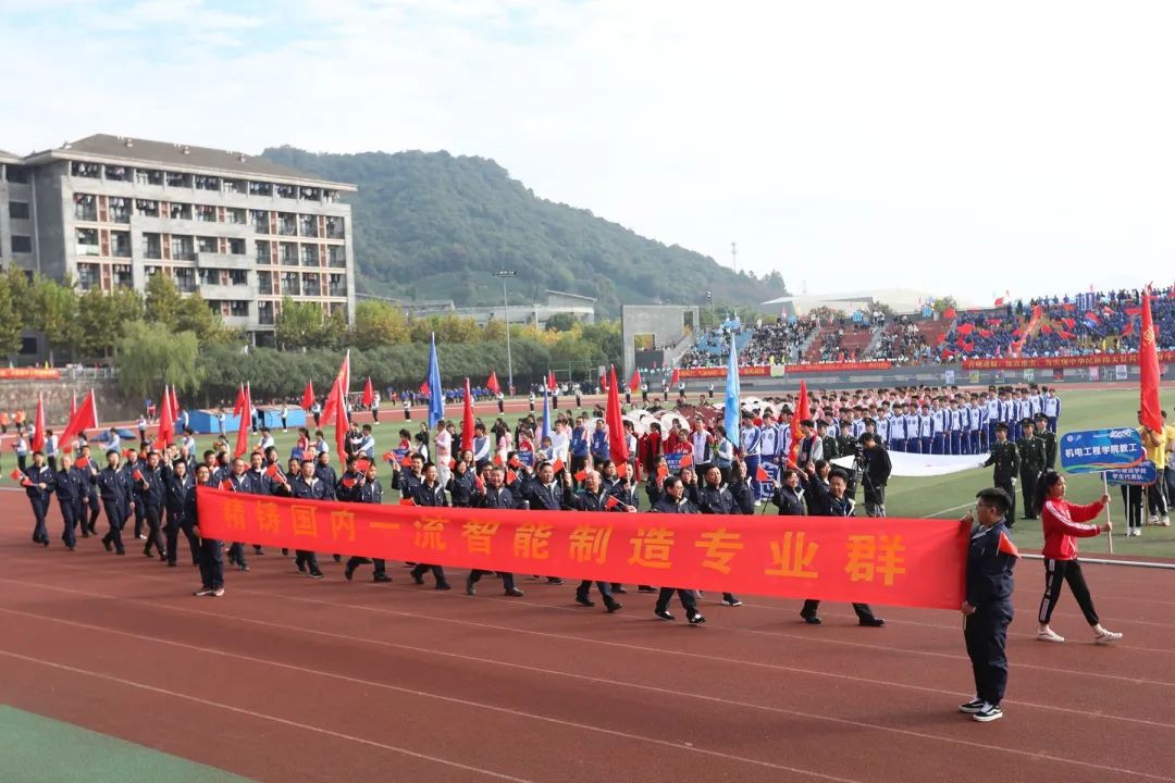 伴随着慷慨激昂的运动员进行曲,19支代表队依次走过出席台。师生们英姿飒爽,斗志昂扬,步伐铿锵有力,口号响彻云霄,充分展示了杭科院人奋发向上的良好风貌,表达了他们苦硬进取、永不言败的决心和信心。