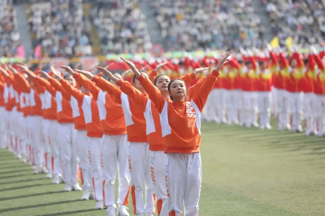 在广播操比赛中,师生们精神饱满、热情高涨,动作规范,整齐划一,共同舞动青春的旋律,赢得观众席上师生们的阵阵掌声。