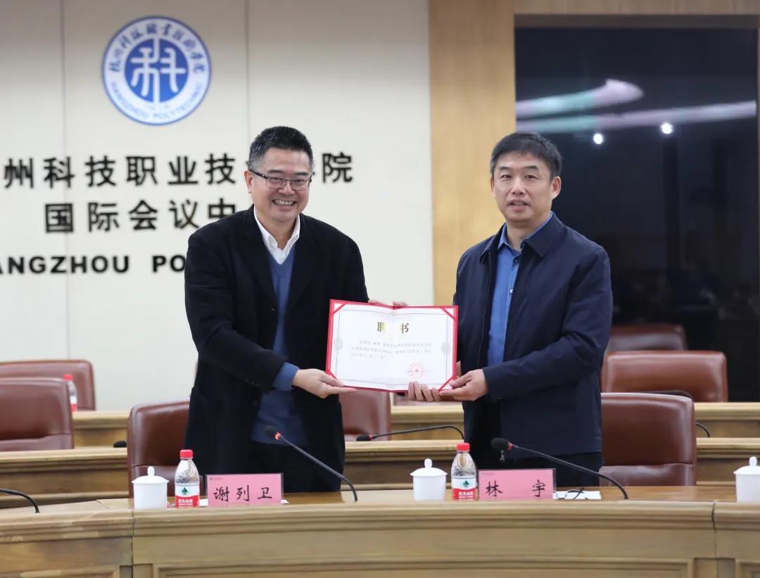 校党委书记谢列卫向林宇一行的到来表示热烈欢迎,为林宇颁发了学校首届发展咨询委员会顾问聘书,并感谢国家开放大学一直以来对我校的充分信任,“本次课程共建将为我校城市建设学院进一步深化内涵建设提供重要机会”。