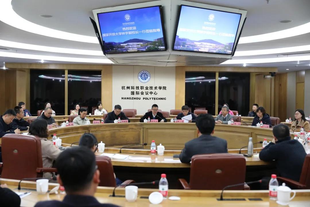 11月28日,国家开放大学副校长林宇一行六人莅临我校指导工作,并与我校签署课程共建协议。我校全体党委班子成员、全体中层干部与校属企业负责人、教师代表出席签约仪式。