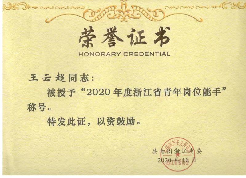 近日,我校信息工程学院王云超老师被共青团浙江省委授予“2020年度浙江省青年岗位能手”荣誉称号。