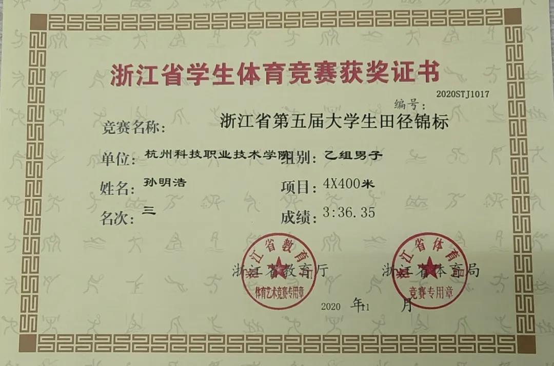 11月26日,浙江省第五届大学生田径锦标赛在丽水落幕,我校学生斩获1金2银1铜,打破赛会纪录1项,获得男子团体总分第四名,取得历史突破性成绩。
