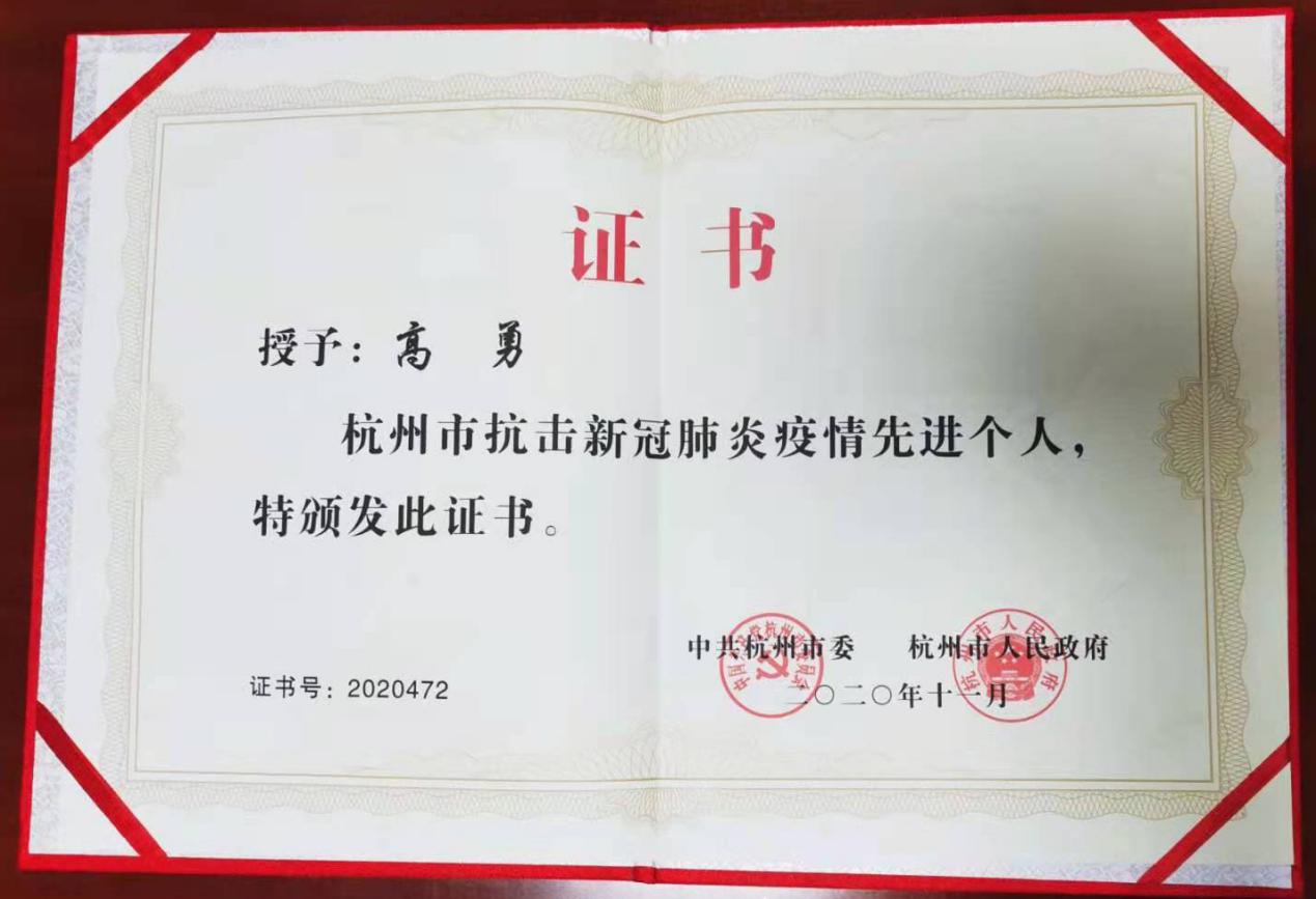 12月1日下午,全市抗击新冠肺炎疫情总结表彰大会在浙江省人民大会堂隆重举行。我校公共事务管理处、校园规划与建设处处长高勇被杭州市委、杭州市政府授予“杭州市抗击新冠肺炎疫情先进个人”荣誉称号,接受现场表彰。