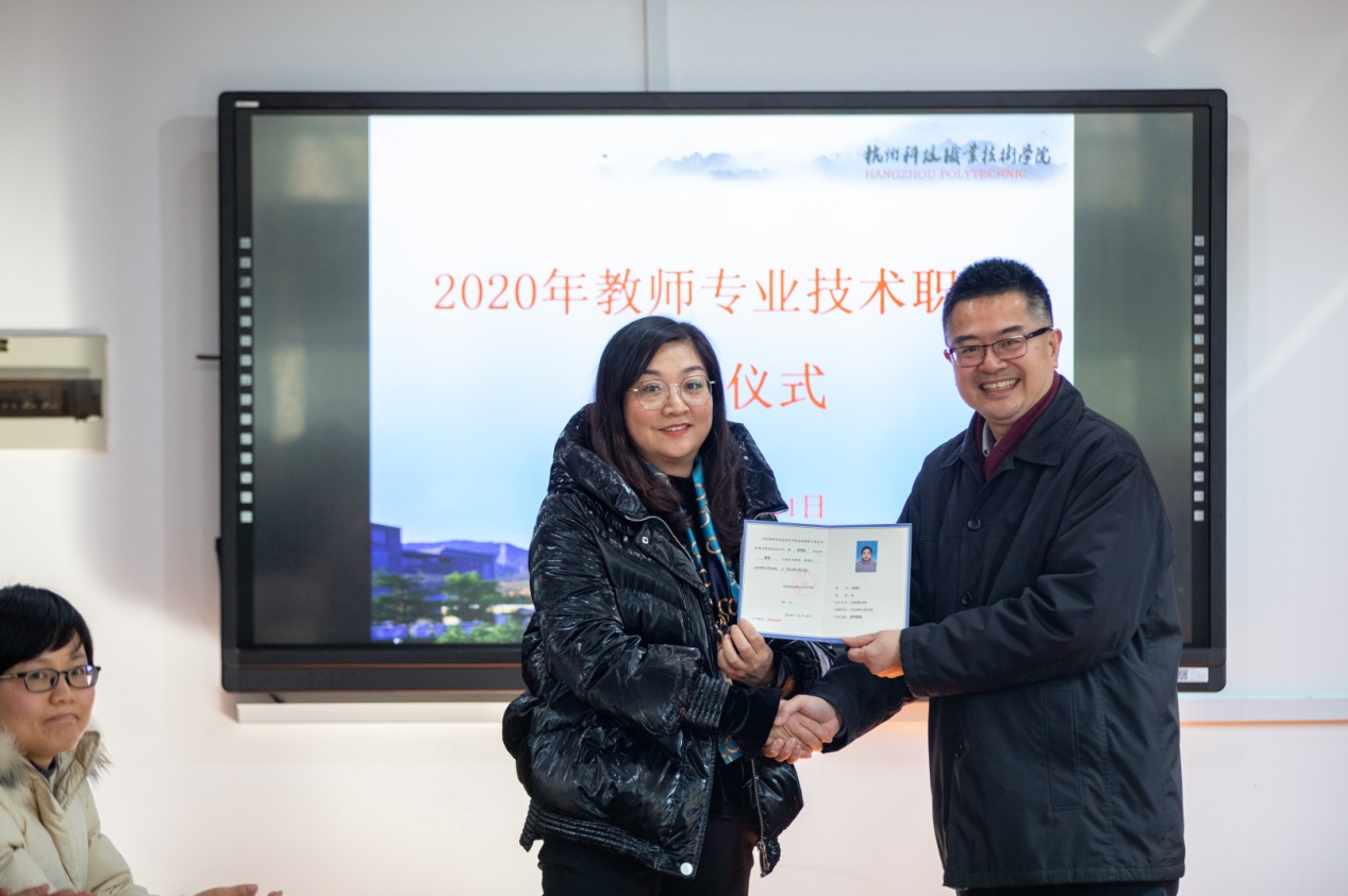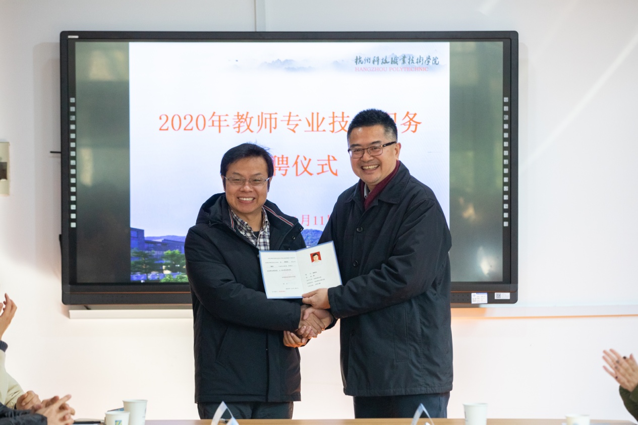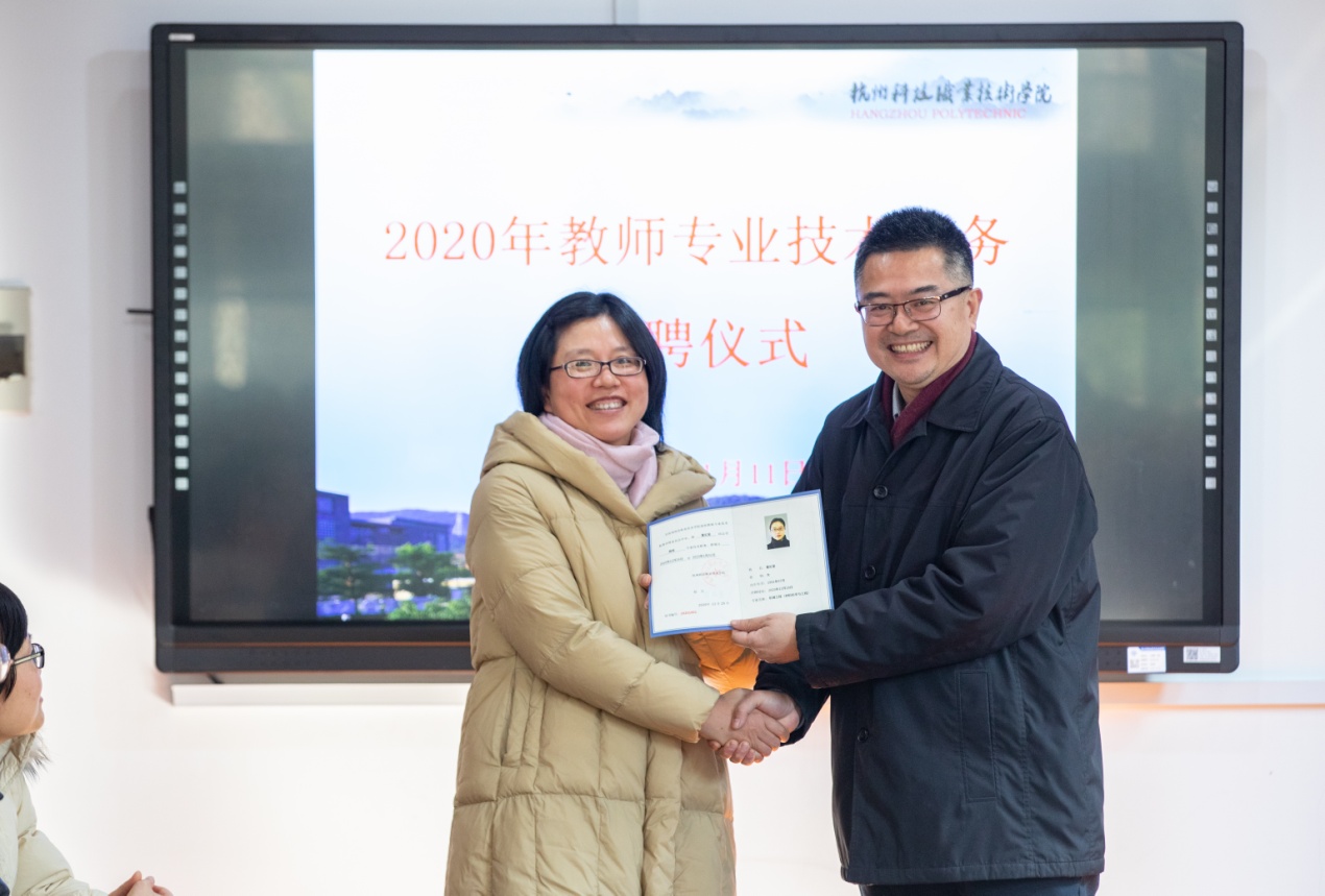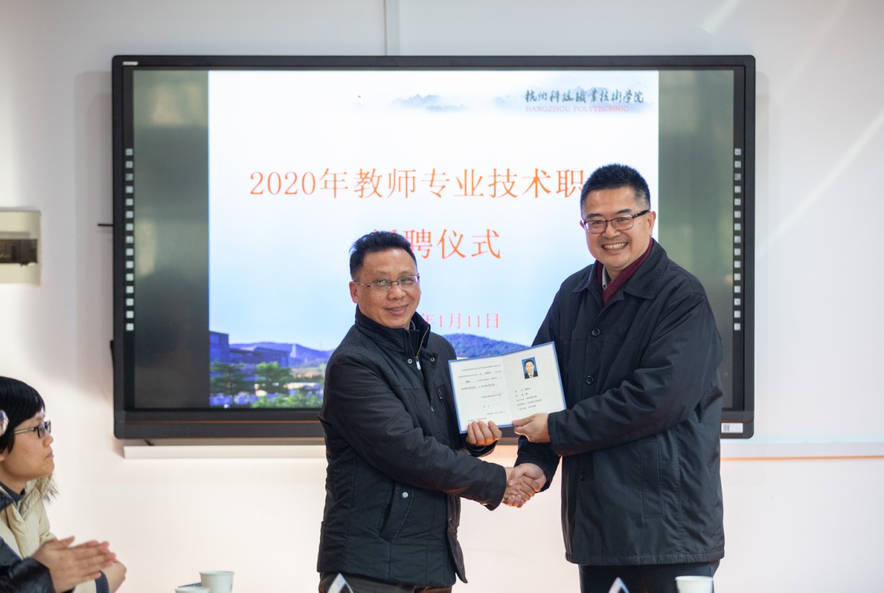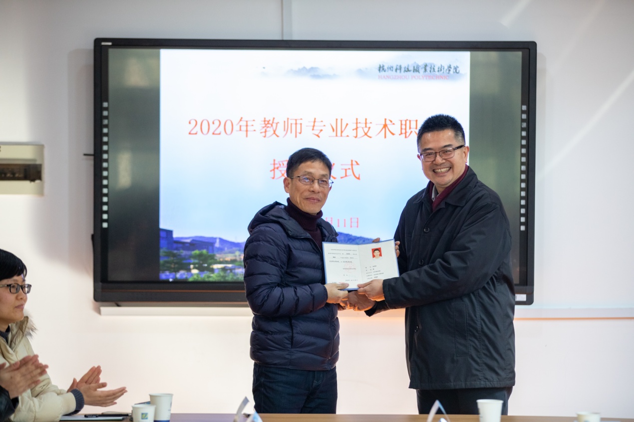 1月11日,我校举行2020年教师专业技术职务授聘仪式。校党委书记谢列卫为晋升教师颁发授聘证书并讲话,副校长寿伟义宣读专业技术职务聘任文件。人事处、教务处、科技处、学生处负责人及2020年晋升专业技术职务的教师参加了授聘仪式。