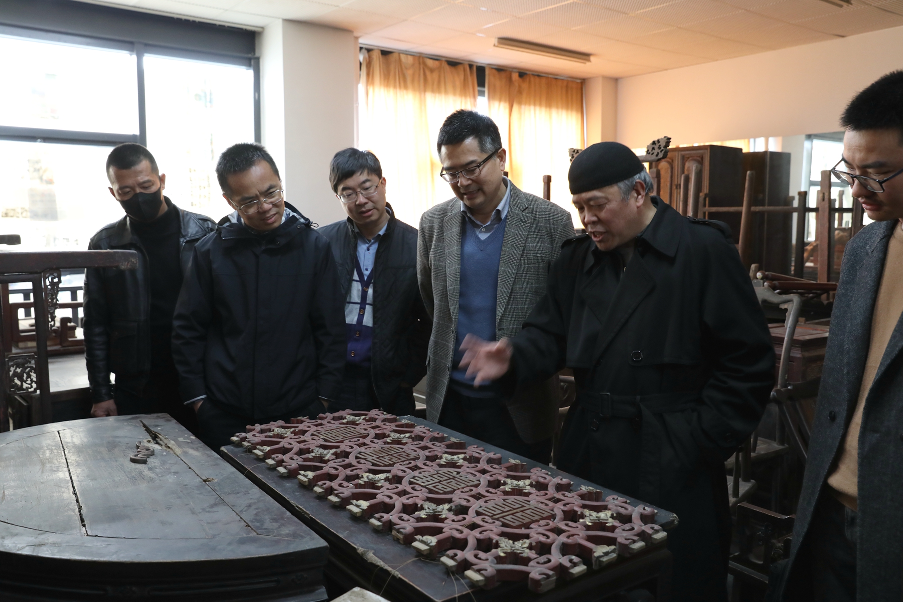 富阳文化学者蒋金乐为拟建的“匠心堂”捐赠了绝大部分中国传统家具和建筑构件藏品,精美的床榻椅凳、雕花窗棂、石雕摆件将两间大教室挤得满满当当。明式家具的风格与特色,窗棂上缠枝莲的寓意,石匾文字的阳刻工艺,蒋金乐对自己收藏的每一件器物都有深厚的感情,都有说不完的文化故事。“美的东西要让更多的人欣赏,这些‘旧物件’都是中国百年工艺的结晶。”蒋金乐说之所以愿意把自己多年来的精心收藏捐献给学校,就是想给他的“宝贝们”找一个妥善的归宿,“用足够大的空间,足够好的形式,把中国传统工艺的美展陈出来,更要让学校艺术专业学生把这份美传承下去。”