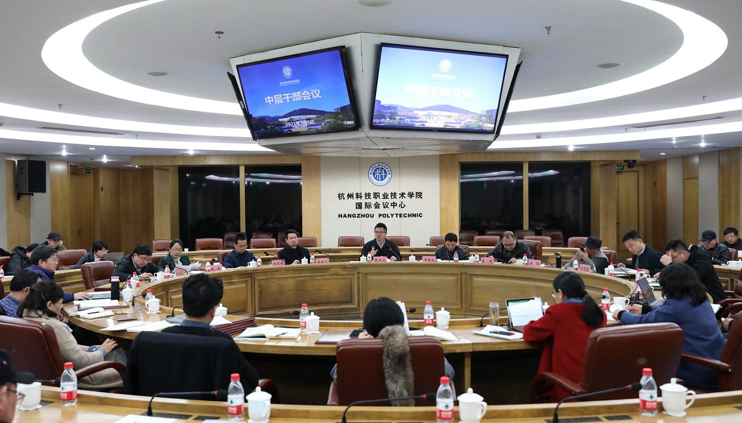 寿伟义传达了《杭州市市属高等学校机构编制管理办法(试行)》和《关于杭州科技职业技术学院机构编制事项的批复》文件精神,解读我校机构编制改革与调整工作方案。各分管校领导具体部署2021年重点工作。