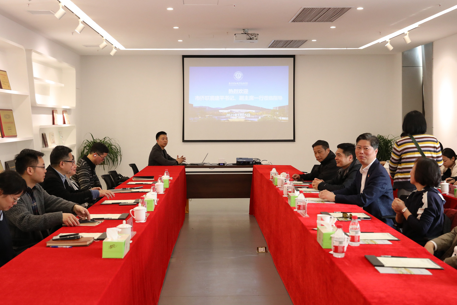 近日,杭州市侨联党组书记、副主席裘建平,侨联副主席、秘书长石利群,二级巡视员、党总支书记范方军,副主席陶晓亮,一级调研员丁佐等一行来校交流考察,校党委书记谢列卫出席接待,校统战部、宣传部、校侨联相关负责人陪同座谈。