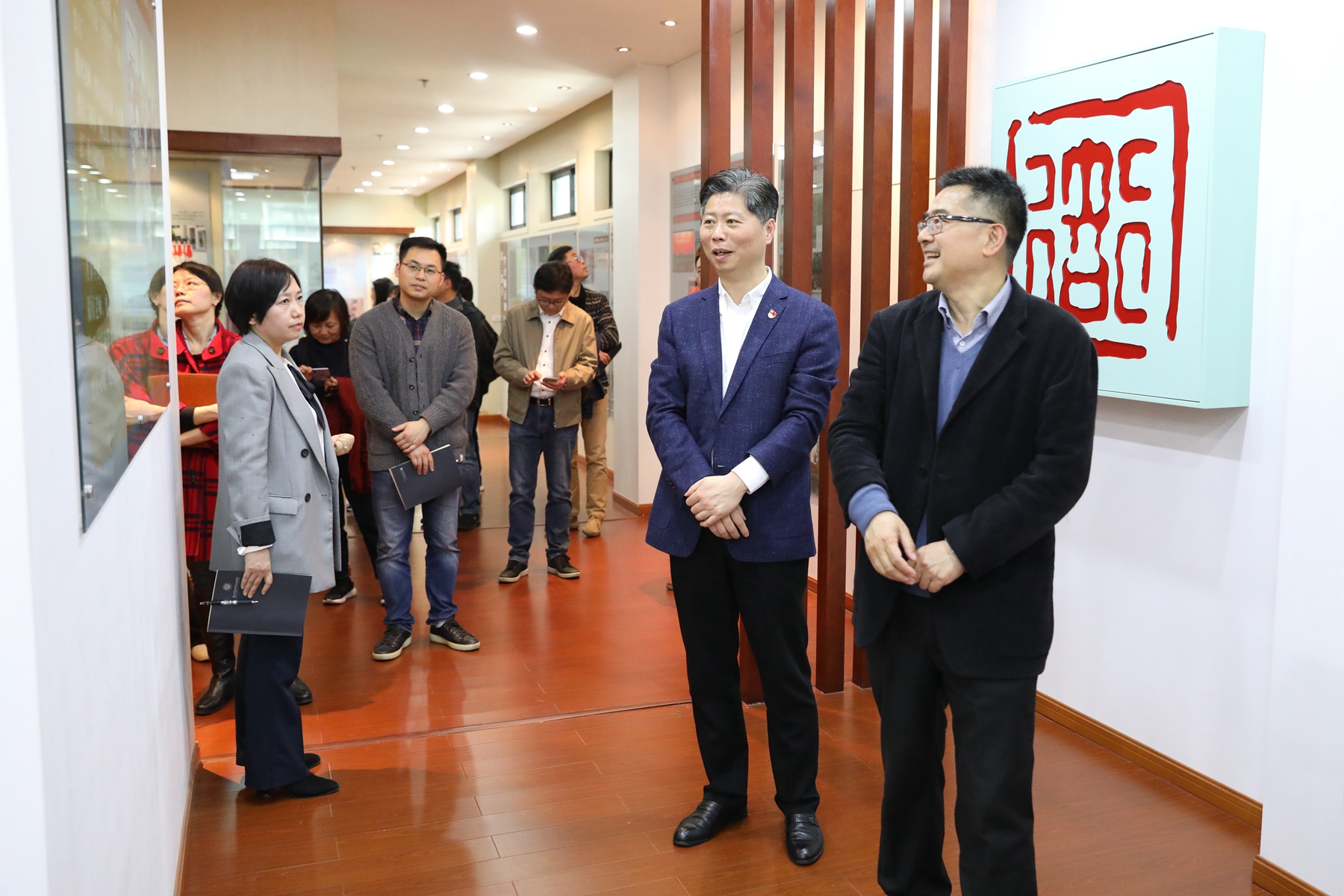 座谈会前,裘建平一行在谢列卫的陪同下,参观了学校中轴线文化景观、陶行知研究馆和校史馆。